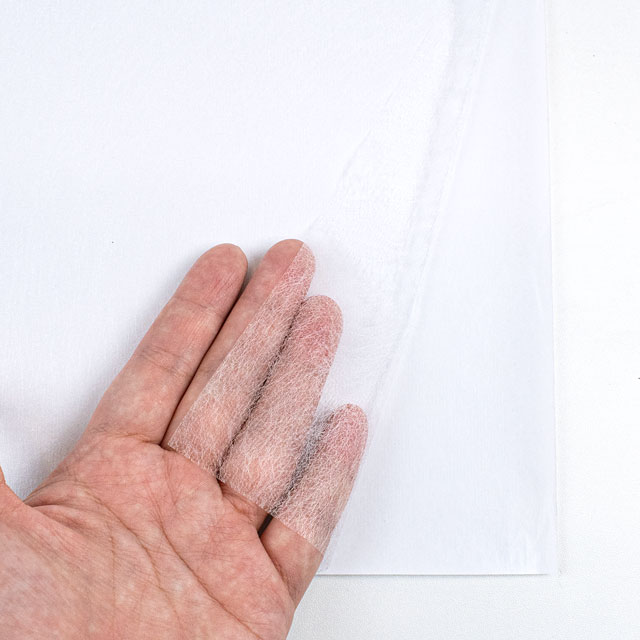 離型紙の付いた、クモの巣状のアイロン両面接着シートです。