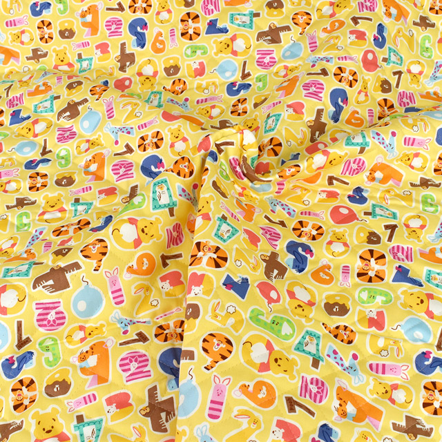 くまのプーさんの仲間たちの数字のデザインの柄のキルティング生地です。