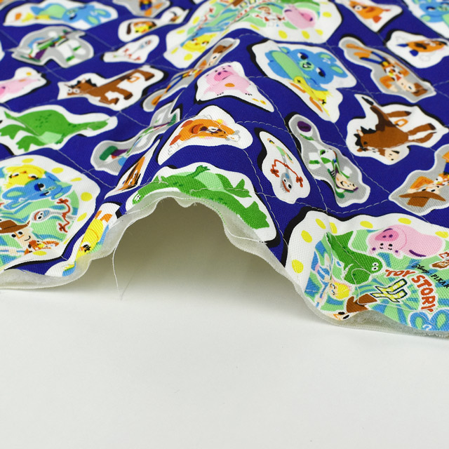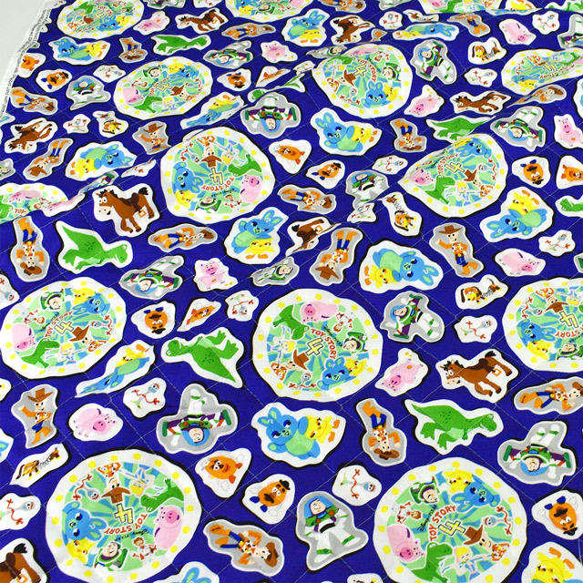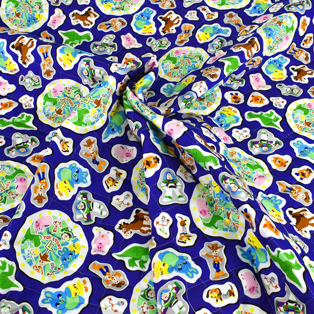 トイストーリーの仲間たちがデザインされた柄のキルティング生地です。
