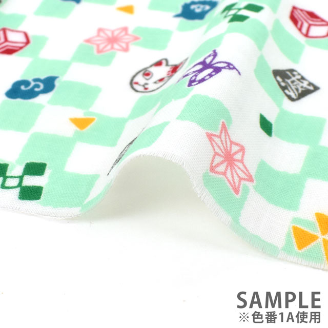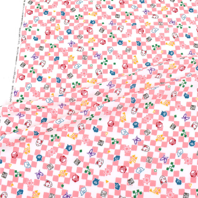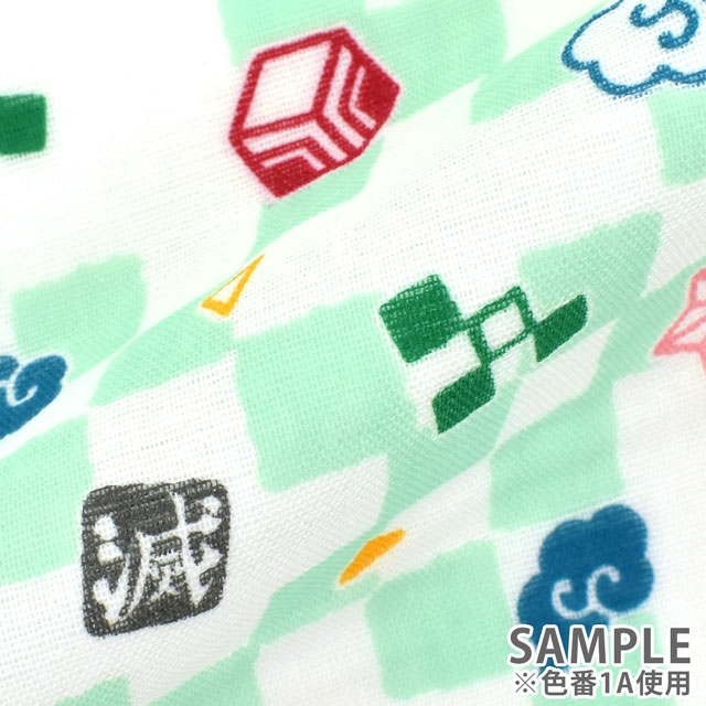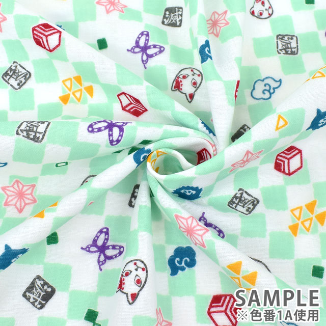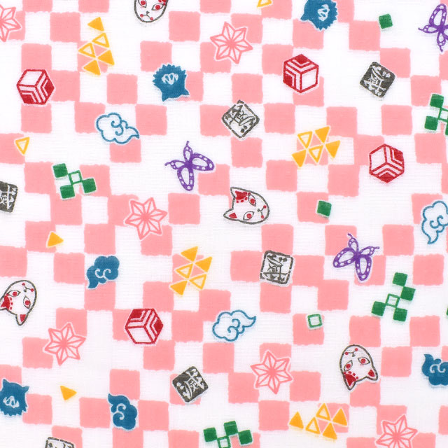 「鬼滅の刃」のアイコンと市松がデザインされたダブルガーゼ(Wガーゼ)生地です。