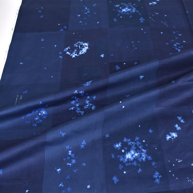 みずみずしい花の影を青写真にして写し、それを沢山並べて一枚のテキスタイルに仕上げていった時、ブルーの中に浮かぶ花びらが大きな宇宙の星々のように見えたのです。
