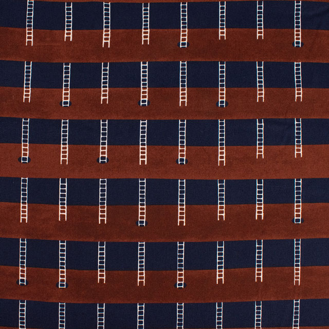 横の太いラインが床と天井になっていて、ところどころに開いている穴からハシゴで上下のフロアを行き来できるような、ちょっとした遊び心のある柄です。