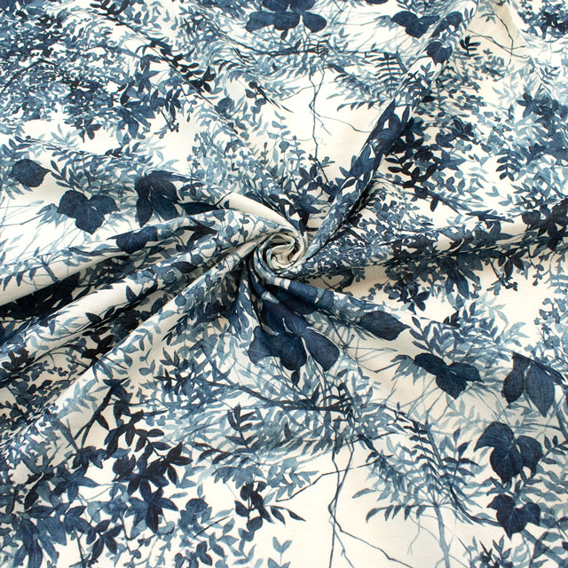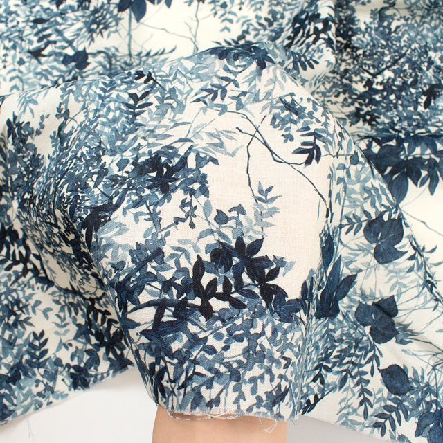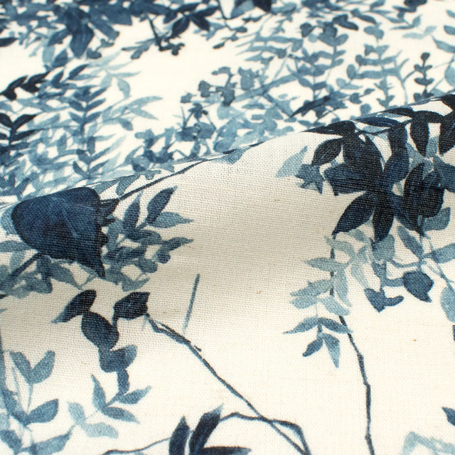 水彩画の色合いが、柔らかな印象を与え、心地よい風が吹き抜ける季節にぴったりのテキスタイルです。