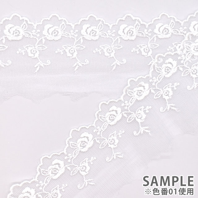 チュール地にレーヨン糸で繊細な薔薇柄の刺繍が施されています。