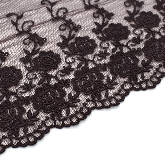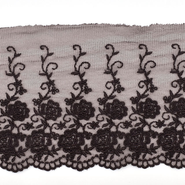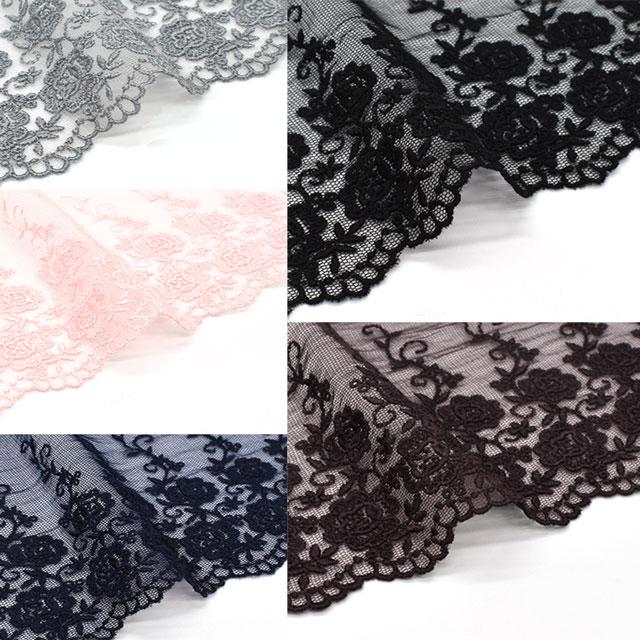 チュール地にレーヨン糸で繊細な刺繍が施されています。