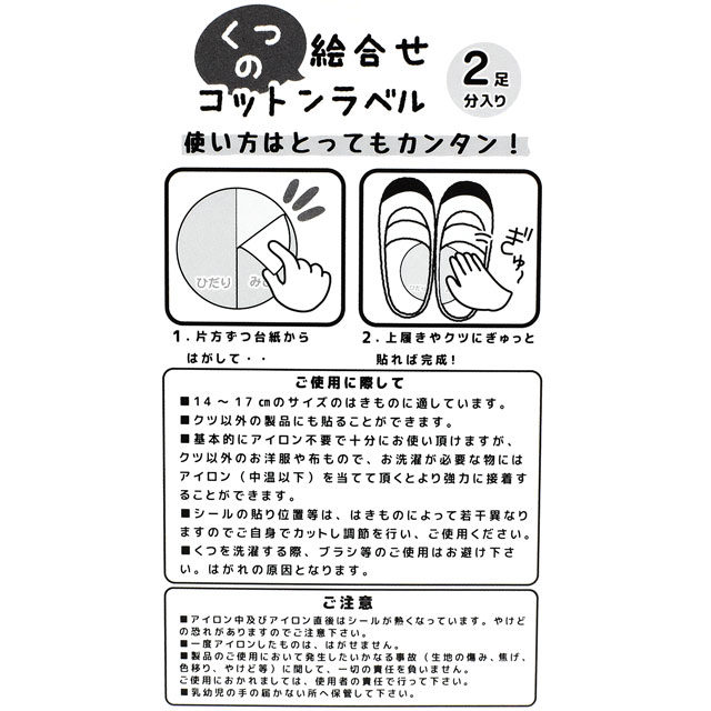 上履きや靴の内側に貼り付けると、字が読めなくても靴の左右が分かる便利アイテムです。