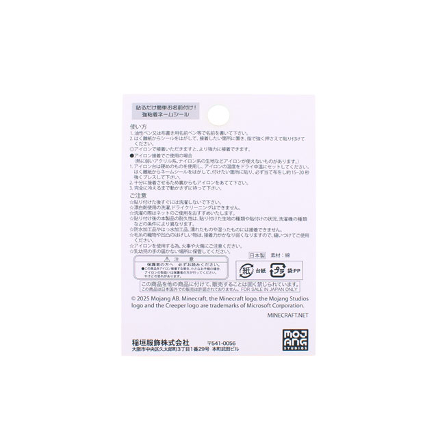大人気ゲーム「マインクラフト」シリーズのネームラベルです。