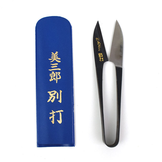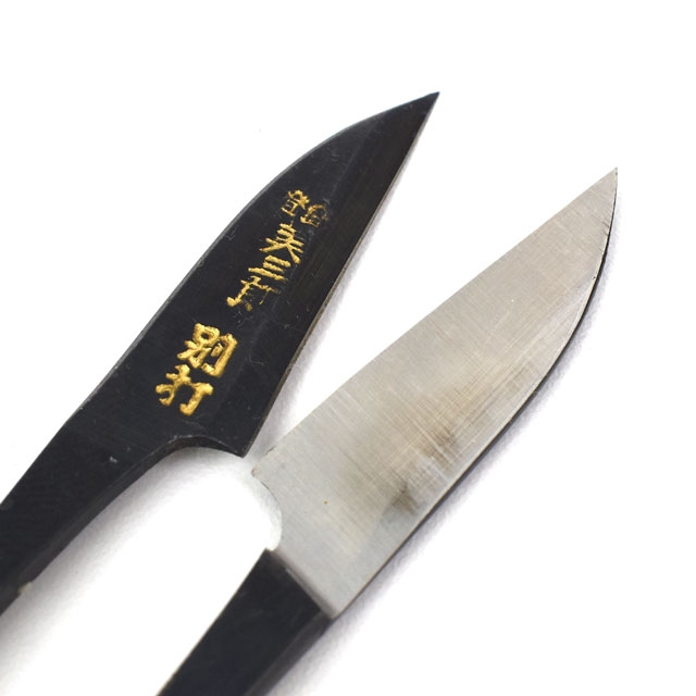 最高級の刃物鋼(安来鋼白紙1号)と軟鉄の複合材を使用し、熟練した職人により入念に仕上げられた糸切りはさみ(握りはさみ・和はさみ)です。