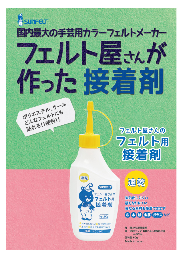 フェルトの接着に最適な、フェルト屋さんがつくった接着剤です。
