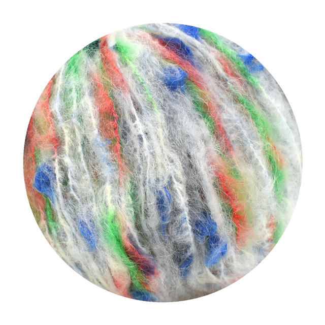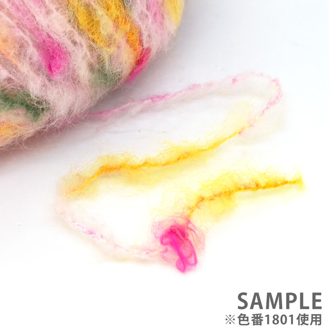 - ●素材:ウール40%(エクストラファインメリノ100%使用)、モヘヤ36%(スーパーキッドモヘヤ100%使用)、ナイロン13%、コットン11%