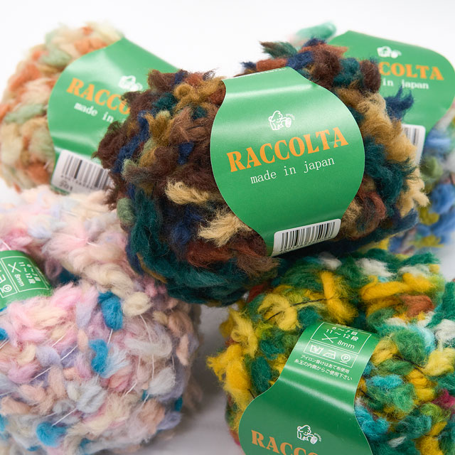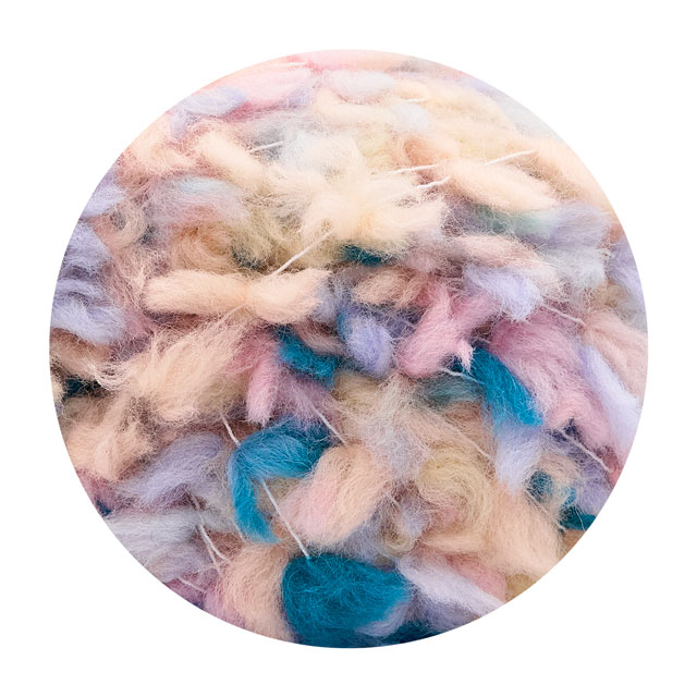 シンプルな編み方でも色とりどりのボア風編地に仕上がります。