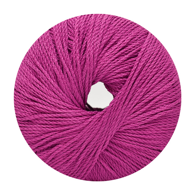 インド綿を編みやすいようしっかりと撚り合わせ、シルケット加工を施して張りと艶を加えられた糸です。