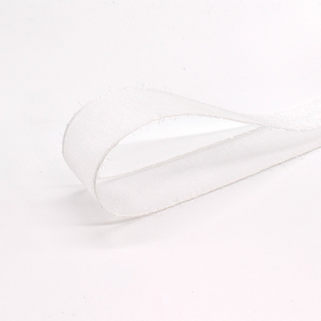 両端にラメの毛足がついたユニークなデザインのオーガンジーリボンです。