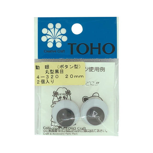 TOHO 動眼/動く目玉 丸型黒目 ボタン型(4-320) 20mm 06Bm99_