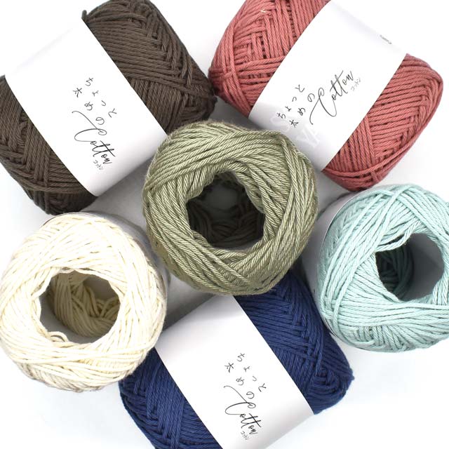 編むのが大変だったコットンヤーンを綿100%ながら重くなりすぎない太さを追求し、『ちょっと太め』に仕上げられたストレートヤーンです。