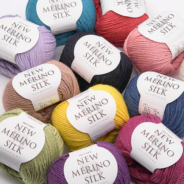 シルクの贅沢な光沢とメリノウールのやわらかさの両方を楽しめる、合太タイプのストレートヤーンです。
