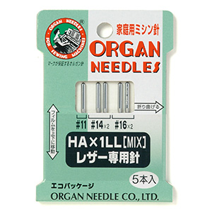 皮革専用の家庭用ミシン針で、通常の針では通りにくい皮革素材を縫うことが出来ます。