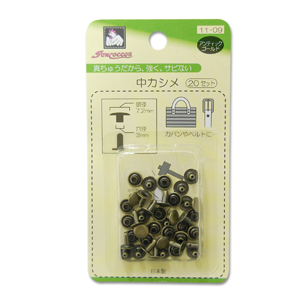 バッグの持ち手付けや、ベルト、革細工に欠かせないカシメです。