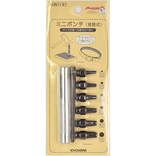 6つの大きさの穴が開けられる、差し替え式のポンチです。