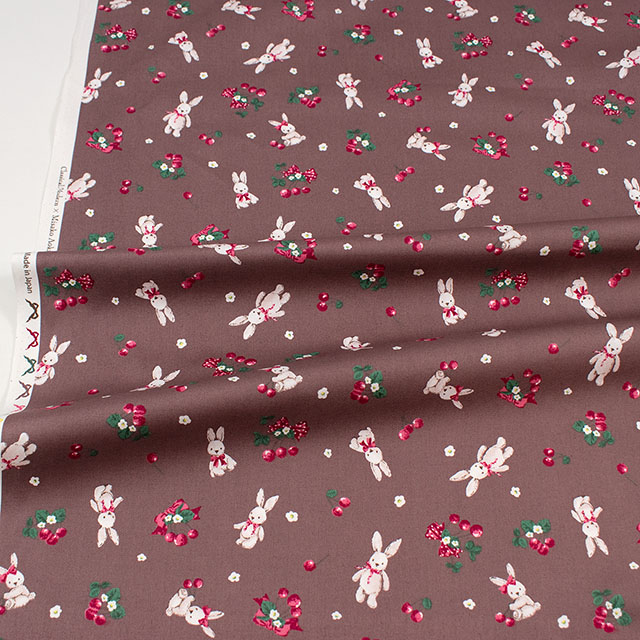 かわいいウサギとおいしそうなサクランボの総柄生地です。