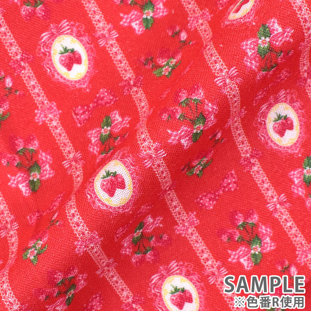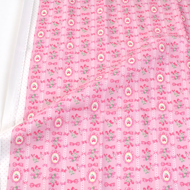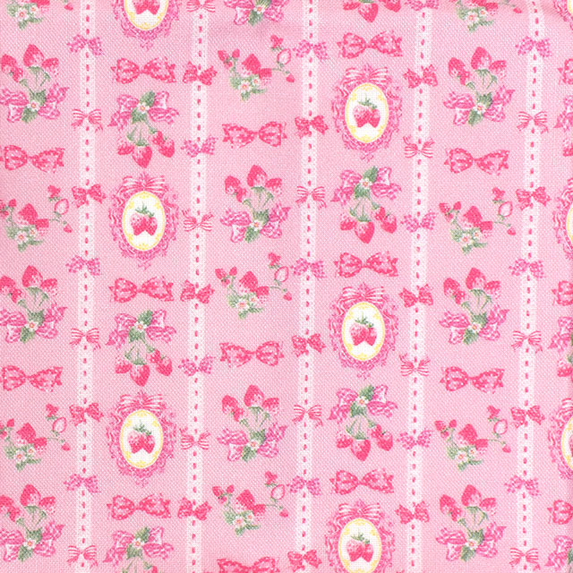 カメオフレームに入ったいちごとリボンがレースのようにデザインされています。