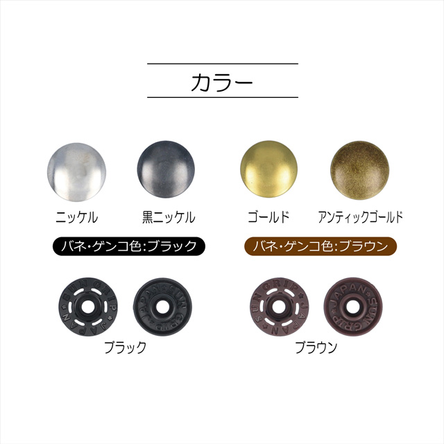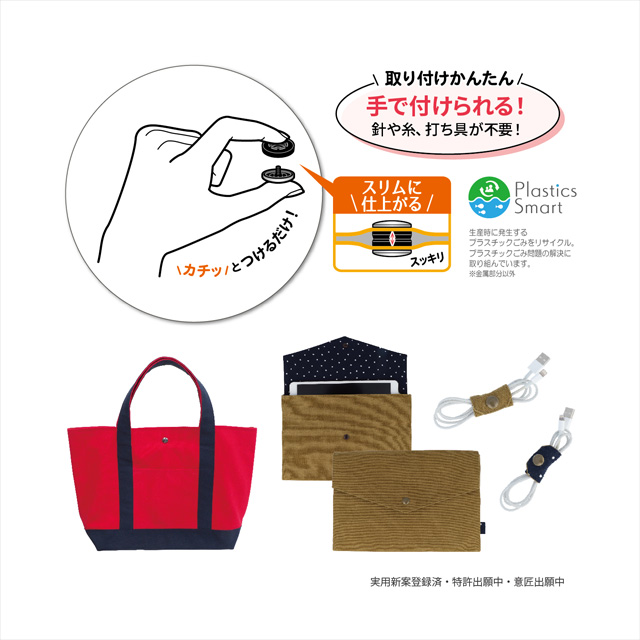 パチッとはめるだけで取り付けられる、打ち具不要のワンタッチプラスナップのスリムタイプです。