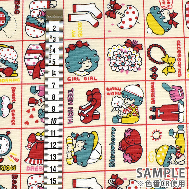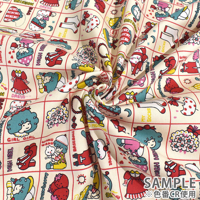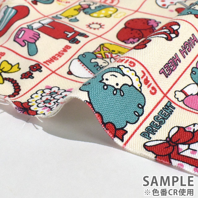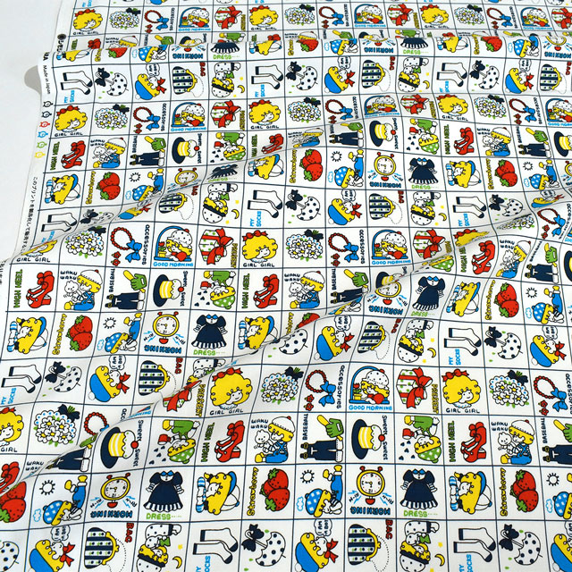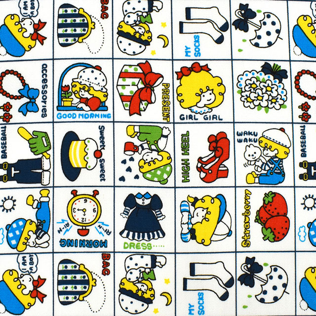 いろんなイラストがぎゅっと並んでいて、ポーチなどのこものを作っても可愛く仕上がります。