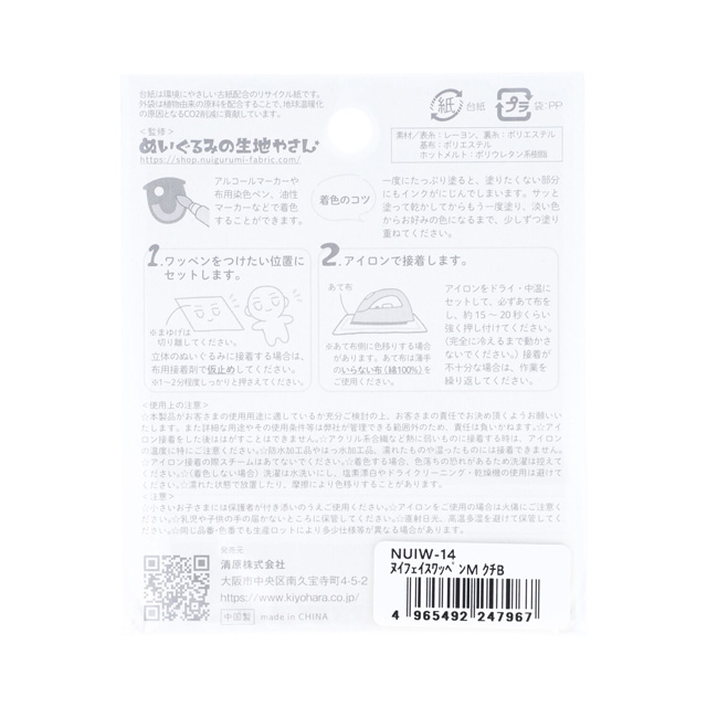 「ぬい」のフェイスデコレーションにぴったりの、ぬいぐるみの生地やさん監修のフェイスワッペン。