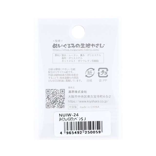 「ぬい」のフェイスデコレーションにぴったりの、ぬいぐるみの生地やさん監修のフェイスワッペン。