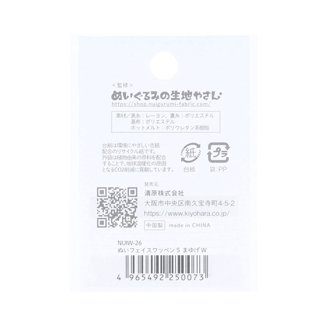 ぬいぐるみの生地やさん監修のフェイスワッペン!アイロン接着タイプの刺しゅうワッペンです。