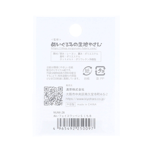 「ぬい」のフェイスデコレーションにぴったりの、ぬいぐるみの生地やさん監修のフェイスワッペン。