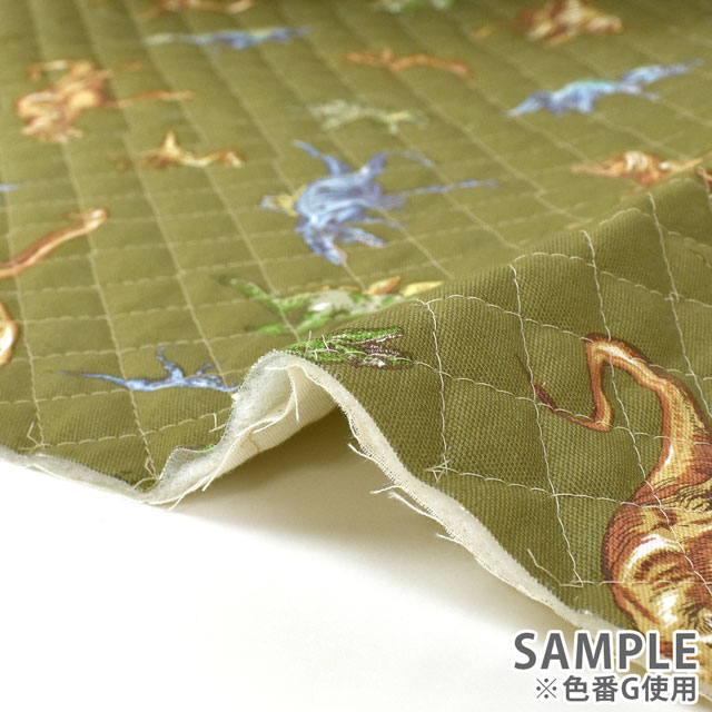 柄の上下がないので、裁断も簡単です。中綿入りのキルティング生地は1枚でバッグが作れるので、初心者の方にも扱いやすい素材です。