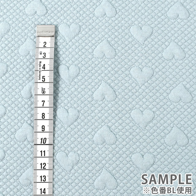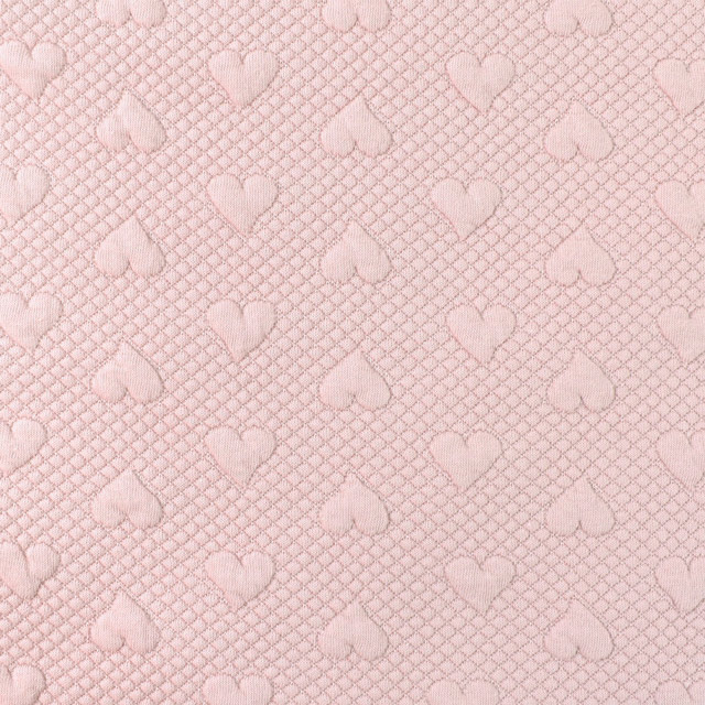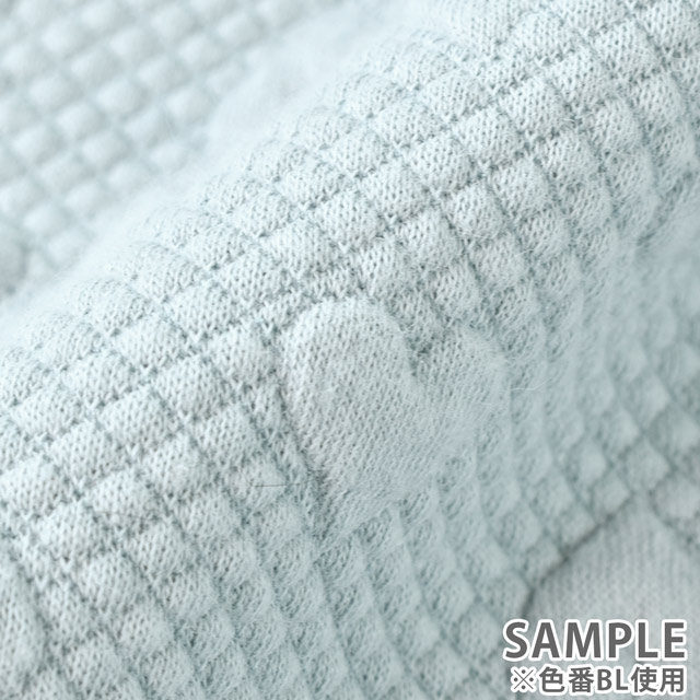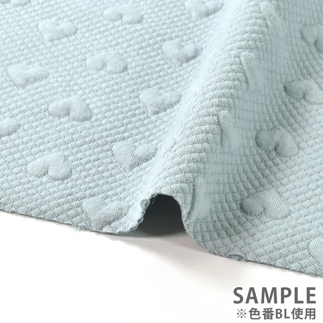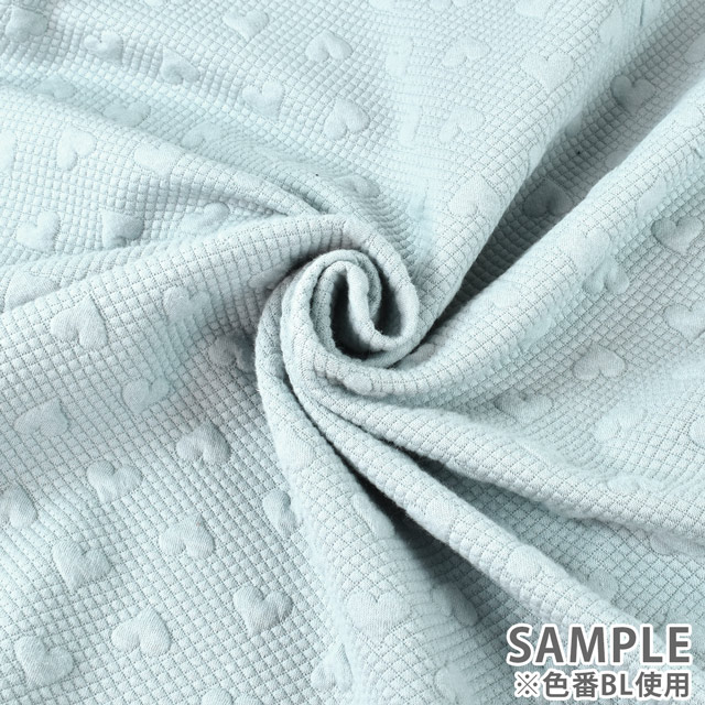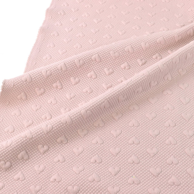 ハート柄がポコポコ浮き上がっているようなポリエステルのジャガードニット生地。