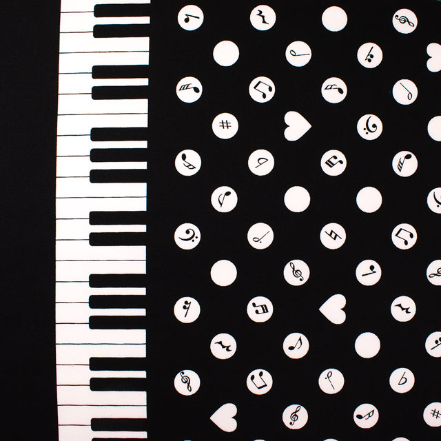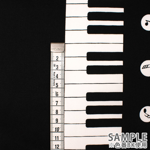 両サイドに鍵盤がデザインされているので、布目を横にして裁断してつくると柄がきれいに出てきます。