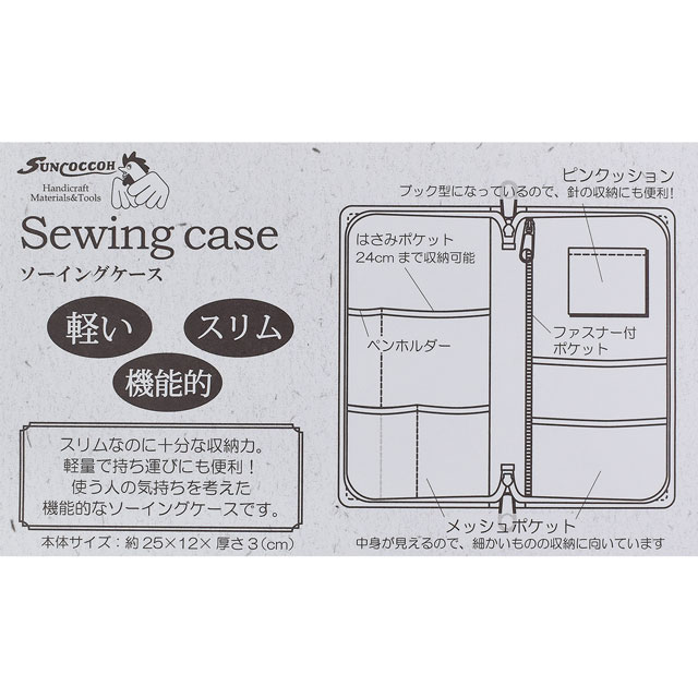 スリムな見た目で十分な収納力を備えたソーイングケースです。