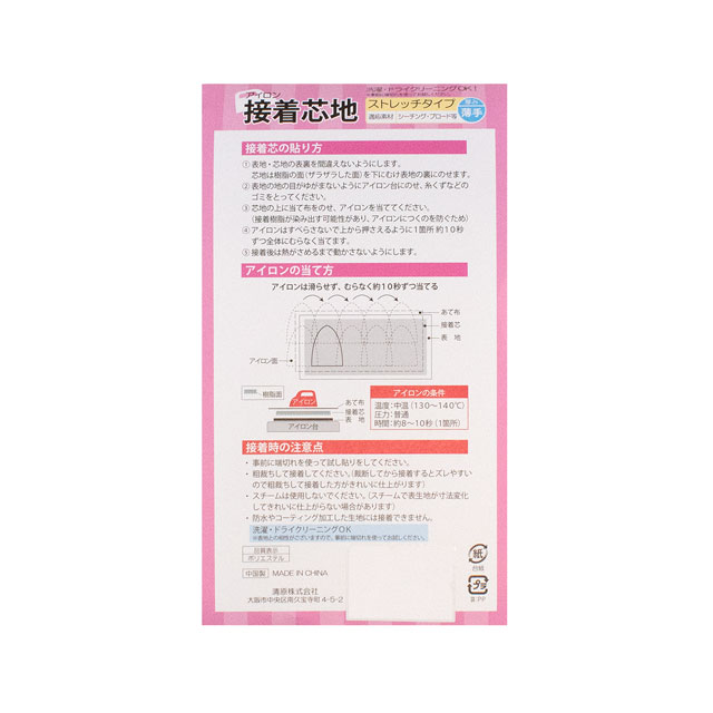 アイロンで接着する際は、あて布をして中温でかけてください。