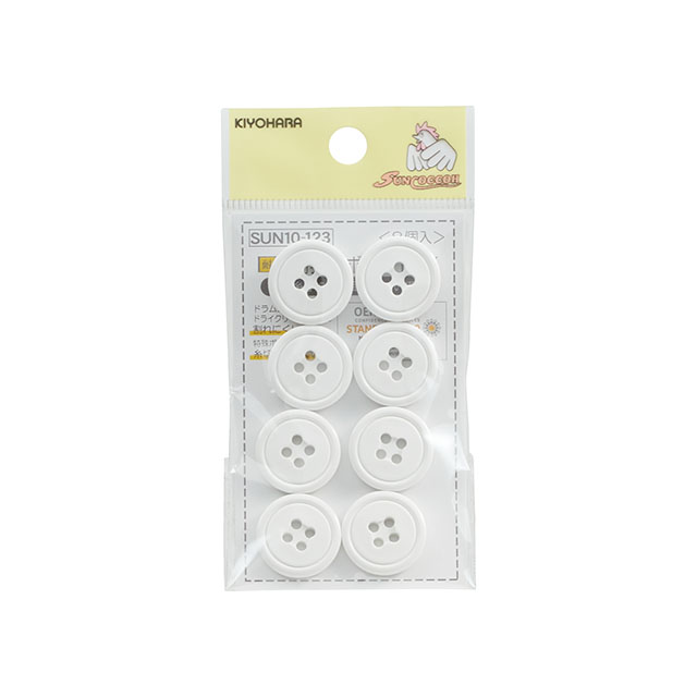 ドラム式洗濯機やドライクリーニングでも割れにくく、耐熱温度約220℃でアイロンに強い耐熱性ナイロンの白衣用ボタンです。