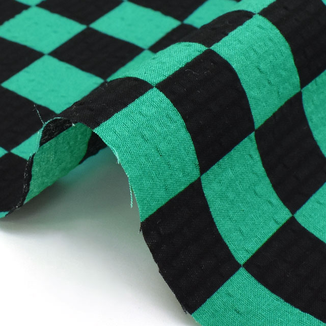 お子様のじんべいやゆかた作りにぴったりの和風柄プリントのリップル生地です。