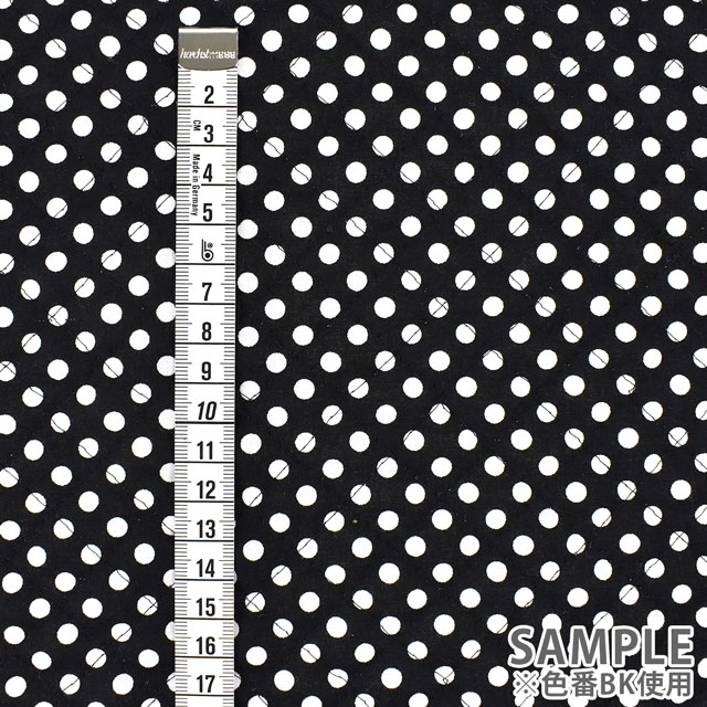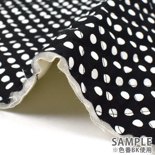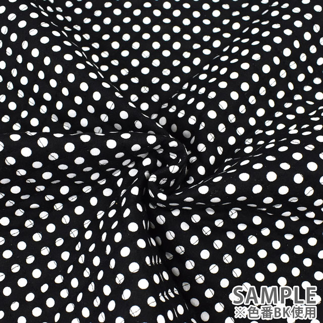 水玉(ドット)模様のシーチングをキルティング加工した生地です。