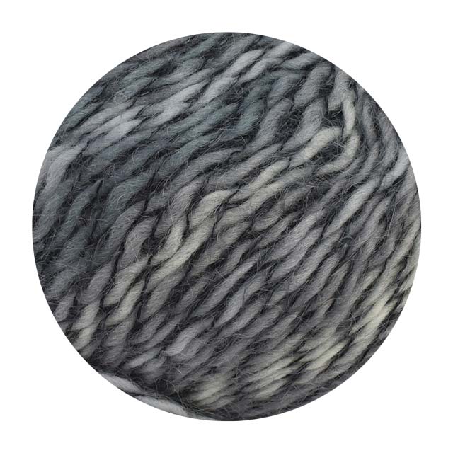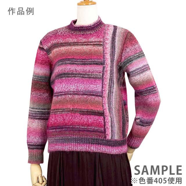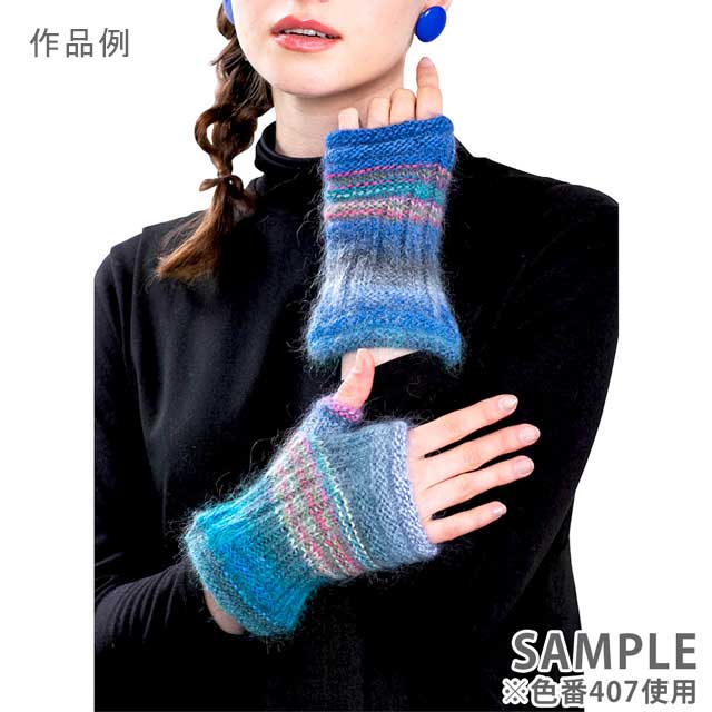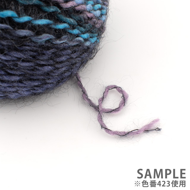 簡単な編地でも色が混ざり合いながら表情豊かに表現できるヘアリー感のある糸。