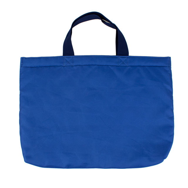 裏布がキルティング生地なので、重い荷物を入れても丈夫です。机の横にかけても床につきにくい便利な短い持ち手と内側にネームタグがついています。