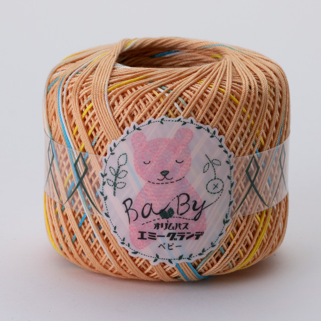 風合いと滑りがよく編みやすい、シルクのような光沢感とベビー向けにかわいらしいドットプリントが特徴です。
