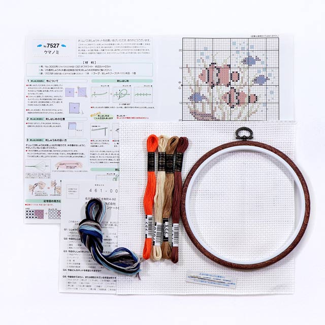 - ●セット内容:25番刺しゅう糸、No.3000布 ジャバクロス中目、クロス針、おしゃれフープ、カラー図案付説明書