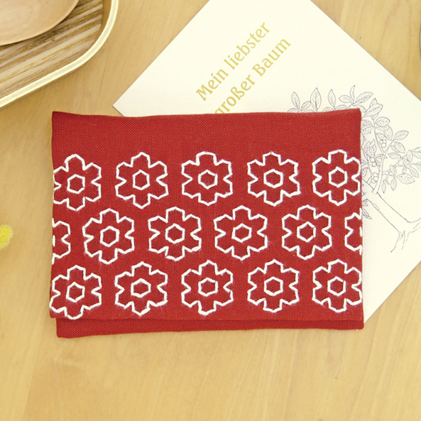 - ●セット内容:晒木綿(赤)、刺し子糸(生成)、刺し子針、作り方説明書