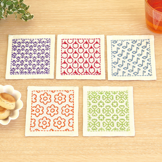 ●セット内容:No.4500刺し子布、刺し子糸(5色)、刺し子針、指ぬき、作り方説明書