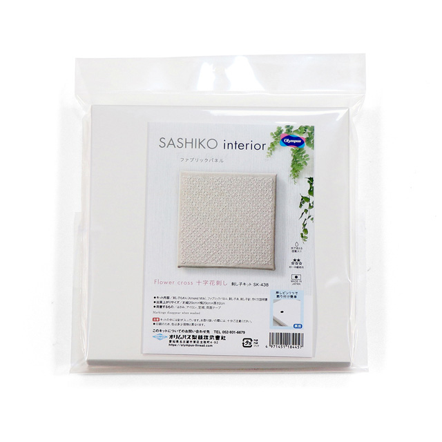 - ●セット内容:刺し子もめん(綿100%)、刺し子糸(綿100%)、ファブリックパネル(紙)、刺し子針、作り方説明書(※図案は布にプリント済み)
