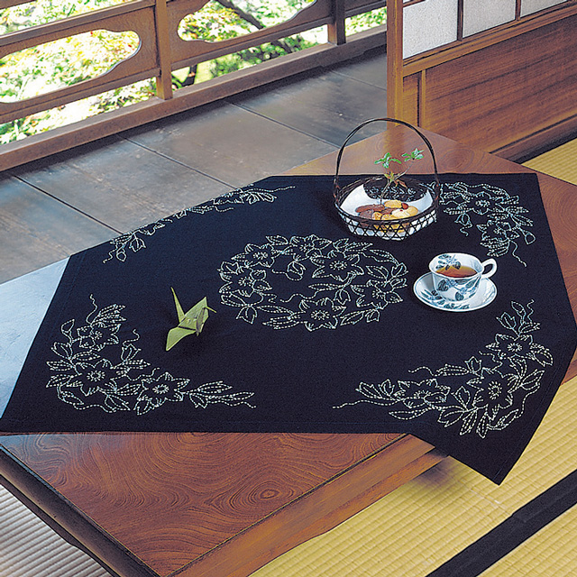 - ●セット内容:25番ししゅう糸<(白糸使用)、No.4500刺し子布(紺)、刺し子針、刺し方説明書、皿付皮指ぬき