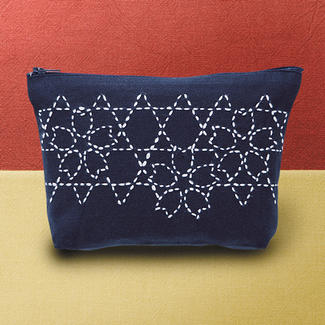 - ●セット内容:刺し子糸細(白糸使用)、No.4500刺し子布(紺)、刺し子針、刺し方説明書、皿付皮指ぬき