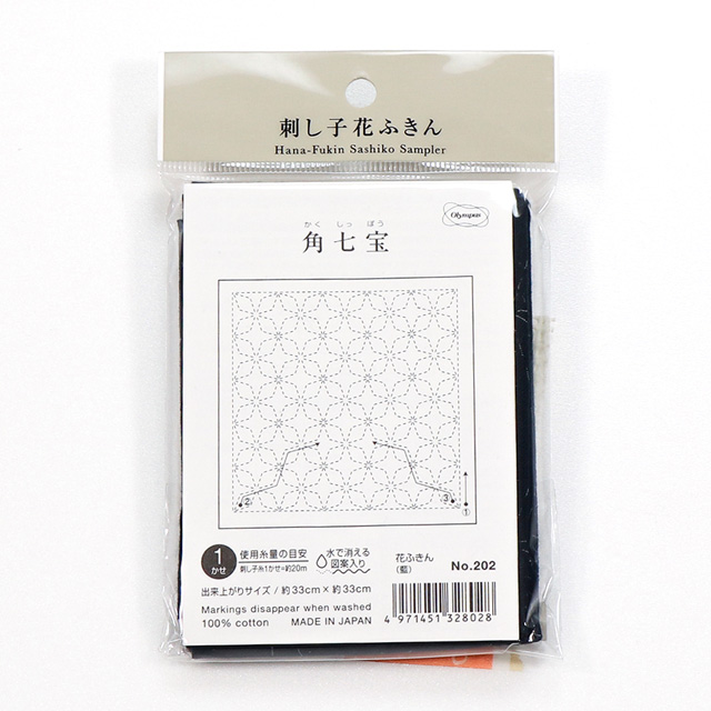 オリムパス 刺し子キット 花ふきん 角七宝-かくしっぽう(202) 藍 06Bg99_