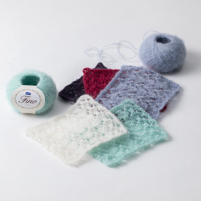 編みやすいやや細目のキッドモヘヤの糸で、編み模様もきれいに仕上がります。